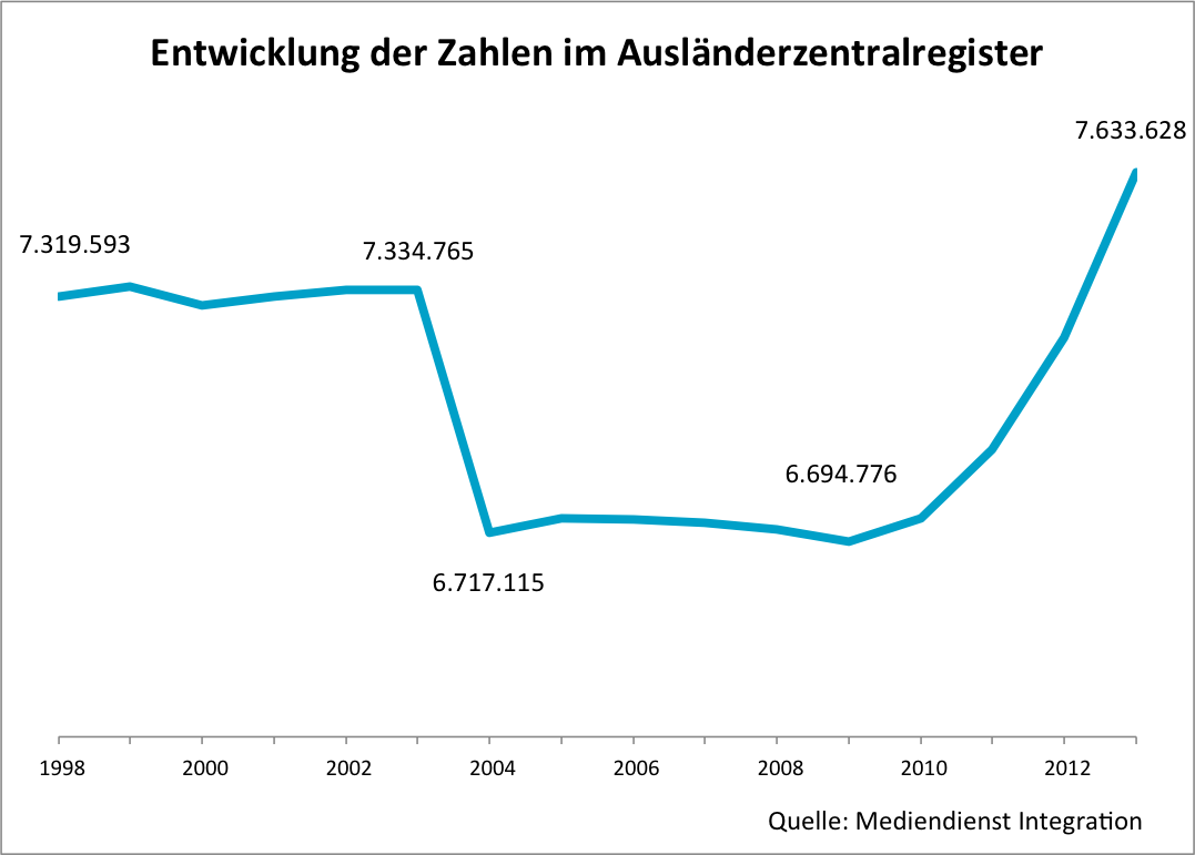 Laut Ausländerzentralregister waren im Jahr 2012 rund 119.000 Menschen aus Bulgarien und 205.000 aus Rumänien gemeldet. Zugewandert sind 2012 rund 25.000 Bulgaren und 46.000 Rumänen – im Vergleich zum Vorjahr waren das 29 Prozent mehr Menschen aus Rumänien und 26 Prozent mehr aus Bulgarien.