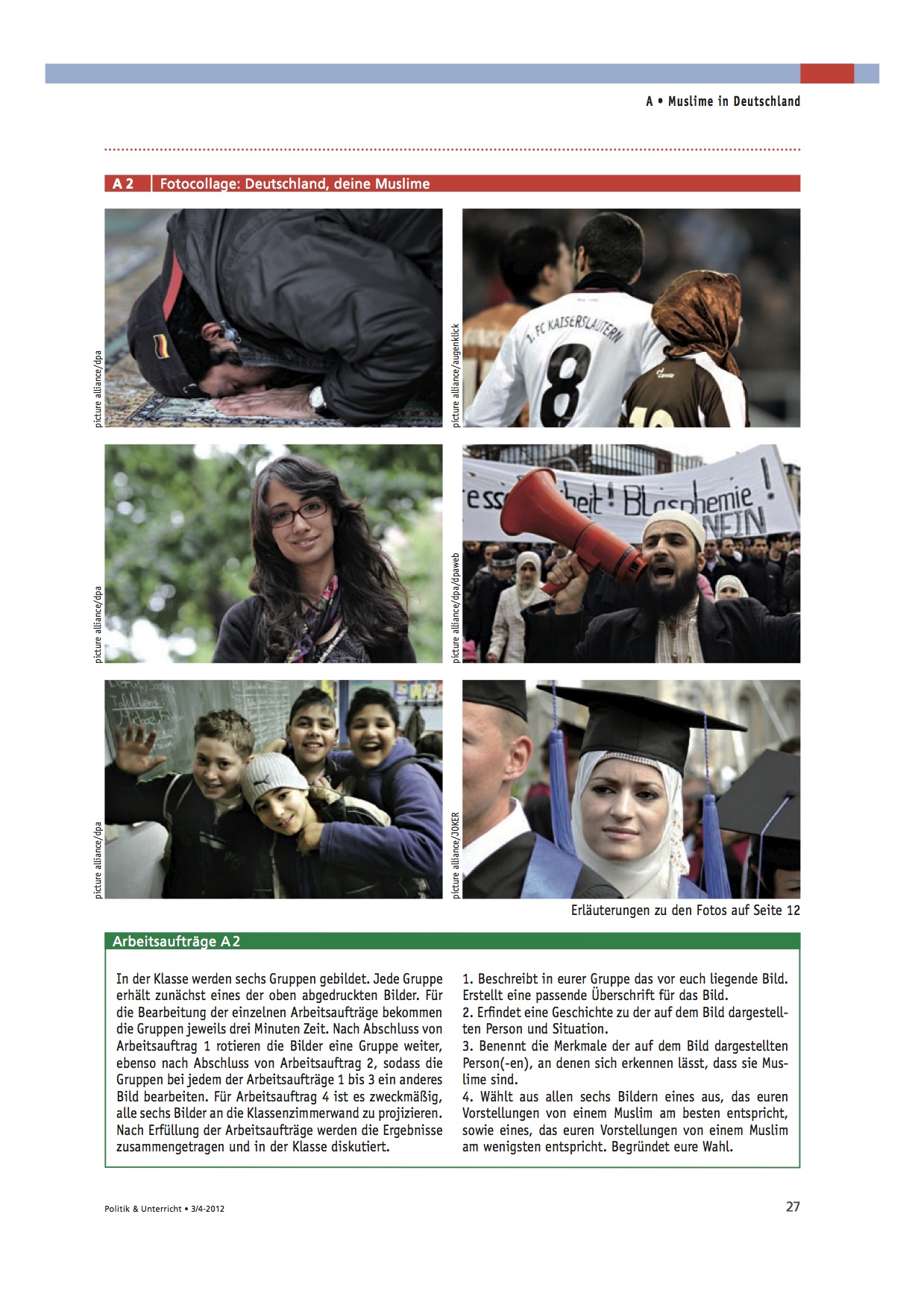 „Muslime in Deutschland“ ist in der Reihe „Politik & Unterricht“ erschienen und wendet sich an Lehrer der Sekundarstufe II in den Fächern Politik, Religion und Ethik. Götz Nordbruch, einer der Autoren des Heftes, spricht von einem „Perspektivwechsel in der Darstellung von Muslimen“. Sowohl die einführenden Texte als auch die Arbeitsvorschläge zielten darauf ab, die gesellschaftliche Vielfalt zu thematisieren, aber eben nicht als Problem, sondern als Normalität. Es gelte, „deutlich und offen zu zeigen, dass Islam und Muslime zu Deutschland selbstverständlich und vorbehaltlos dazu gehören“: So formulieren die Verfasser vom Berliner Verein ufuq.de im Vorwort ihren Anspruch.