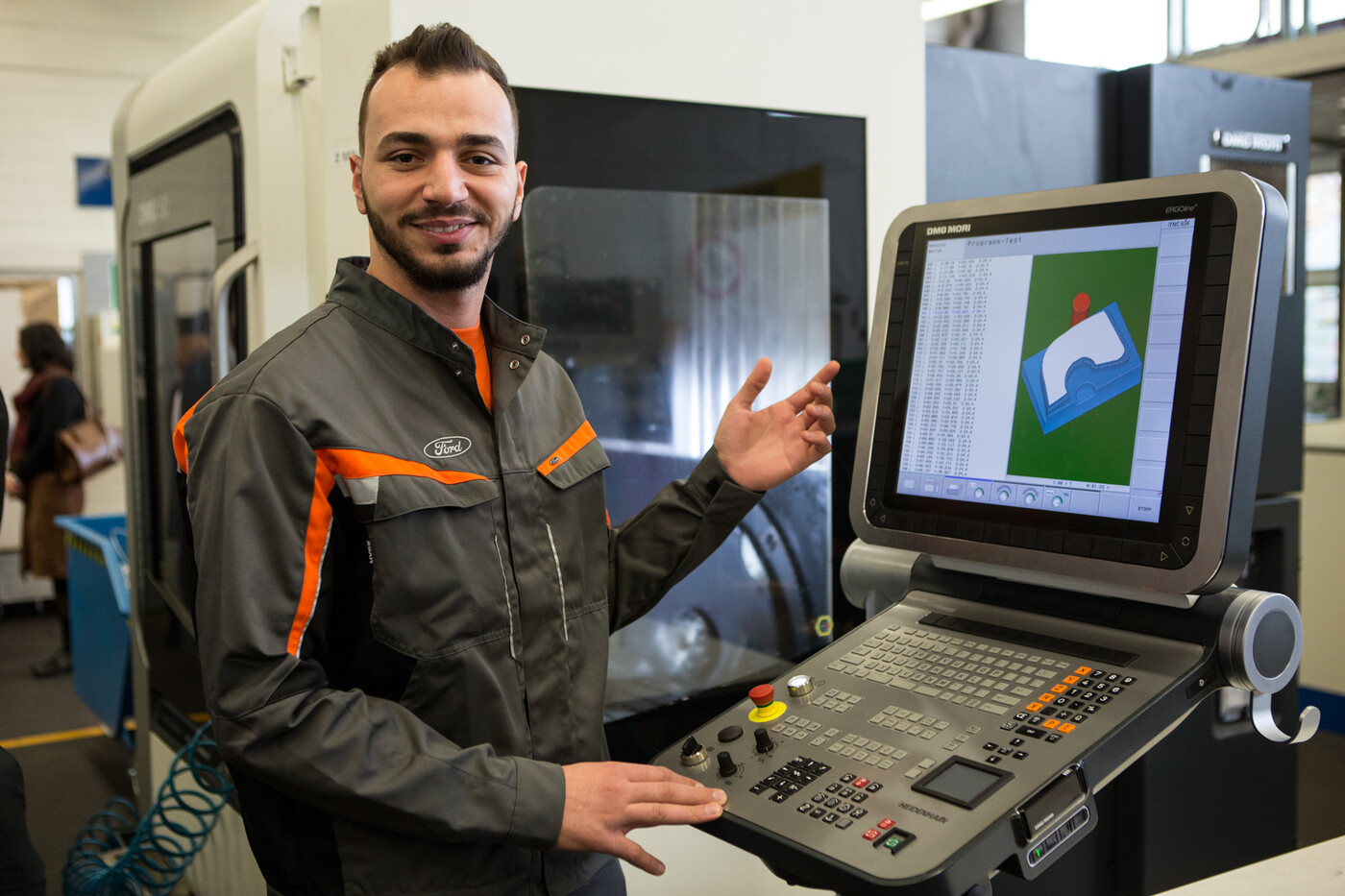 Der Autohersteller Ford in Köln hat sich für ein relativ niedrigschwelliges Angebot für Flüchtlinge entschieden, das sie auf eine Ausbildung vorbereiten soll: Seit diesem Herbst nehmen zwölf Geflüchtete bei Ford an einer "Einstiegsqualifikation" teil. Das Programm gibt es schon seit 1974, die Zielgruppe des Programms sind eigentlich Jugendliche, die keinen Ausbildungsplatz gefunden haben. Jetzt hat es Ford aufgestockt, damit auch Geflüchtete teilnehmen können. Elf Monate lang haben sie die Möglichkeit, die Abläufe im Werk kennenzulernen und eine Grundausbildung mit Schwerpunkt Metallverarbeitung, Logistik oder Gastronomie zu absolvieren. Zum Ende des Programms werden sie auch bei Bewerbungen unterstützt. Außerdem werden für die Teilnehmer, die als Flüchtlinge gekommen sind, Sprachkurse für technisches Deutsch angeboten. In der Vergangenheit haben rund 80 Prozent von ihnen einen Ausbildungsplatz gefunden, 60 Prozent blieben bei Ford.